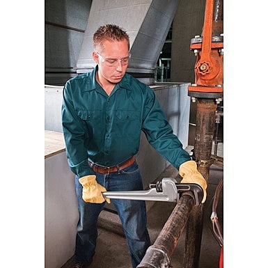 RIDGID® 14" Aluminum Straight Pipe Wrench are essential hand tools for turning and adjusting pipe fittings with threaded connections. Available in ductile iron or lightweight aluminum handles, they offer professional strength and durability. The Aluminum Straight Pipe Wrench upholds RIDGID's renowned quality and ease-of-use, ensuring reliable performance in every task.